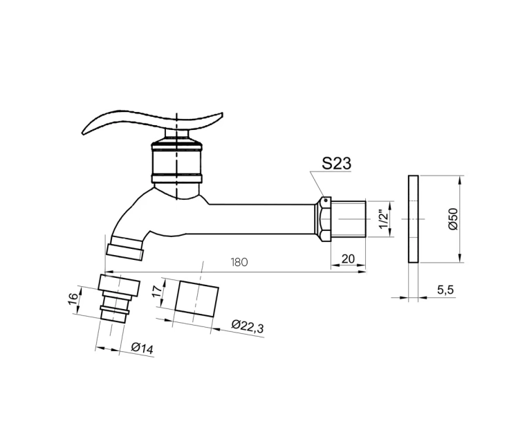 - Длина излива, см: 16