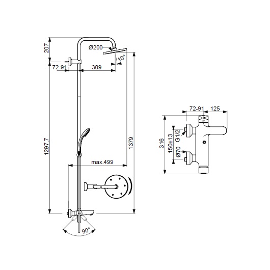 Душевая стойка Ideal Standard IdealRain B1377AA хром