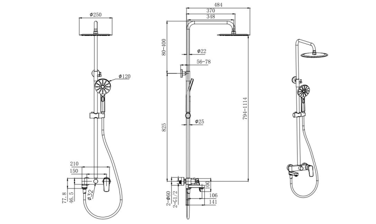 - крегулируемая душевая штанга из нержавеющей стали, выдвигающаяся до 1114 мм в высоту