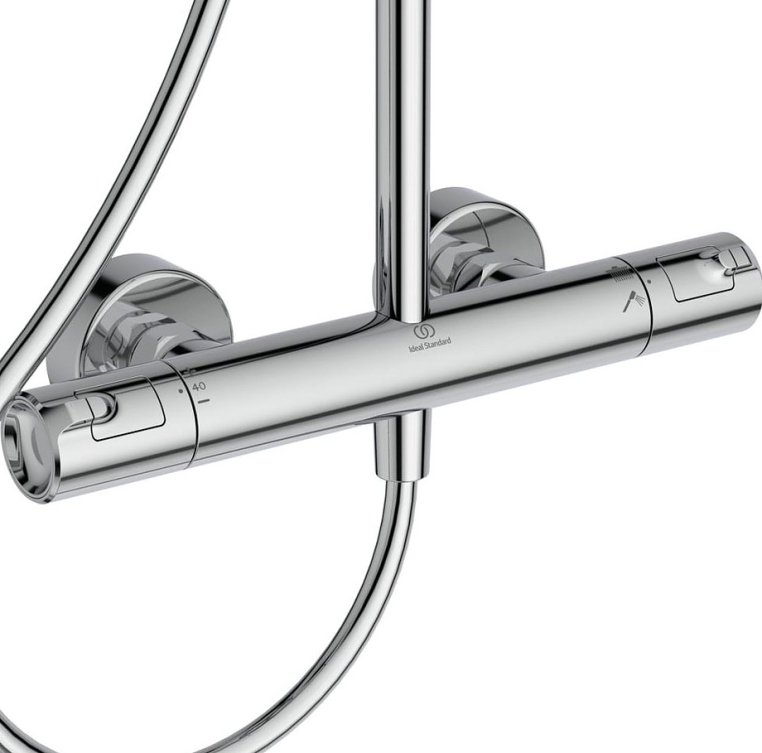 Душевая стойка Ideal Standard Ceratherm T50 A7225AA подчеркнет стильный интерьер вашего душа. Изделие выполнено в современном стиле, в цвете хром. Управление интенсивностью и температурой воды происходит с помощью термостата и это очень удобно. Высота стойки 1117 мм. Материал изготовления - латунь, некоторые элементы изготовлены из качественного, прочного ABS пластика. Эти материалы не подвержены коррозии, а потому прослужат долго, не создавая проблем. Гарантия на стойку – 5 лет, в течение которых производитель Ideal Standard отвечает за ее работоспособность при условии выполнения правил эксплуатации.