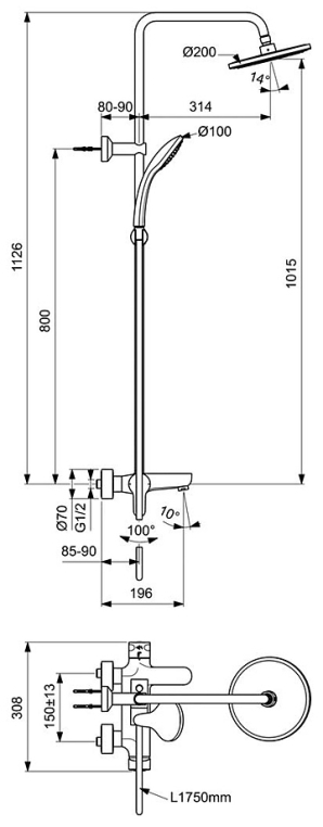 Душевая стойка Ideal Standard IdealRain BC525XG черный