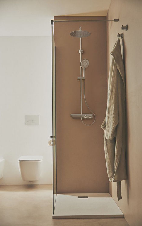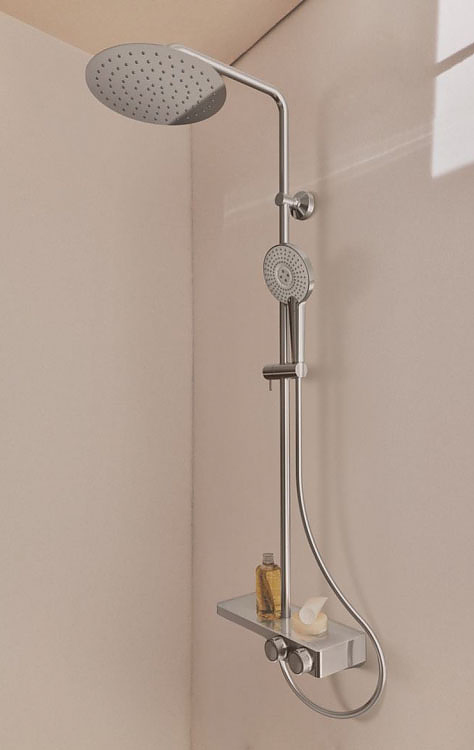 - Верхний душ: 25 х 25 см, металлический, круглый, ограничение потока 12 л/мин