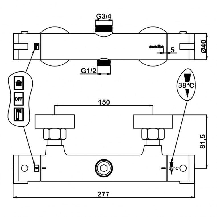 Семейный душ с термостатическим смесителем для душа Swedbe Hermes 9091