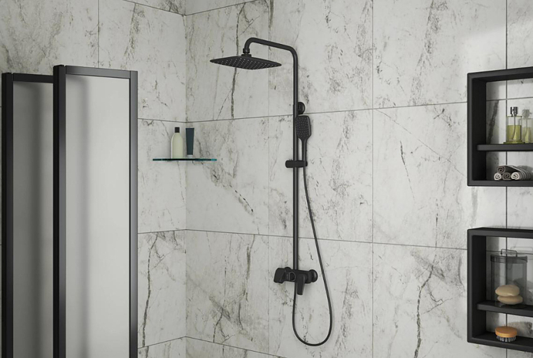 Тропическая душевая система RUSH арт. NE1735-40 Black из коллекции Nevis изготовлена из высококачественной латуни и имеет рычажное управление.В душевую систему установлен картридж D-35 с керамическими пластинами.