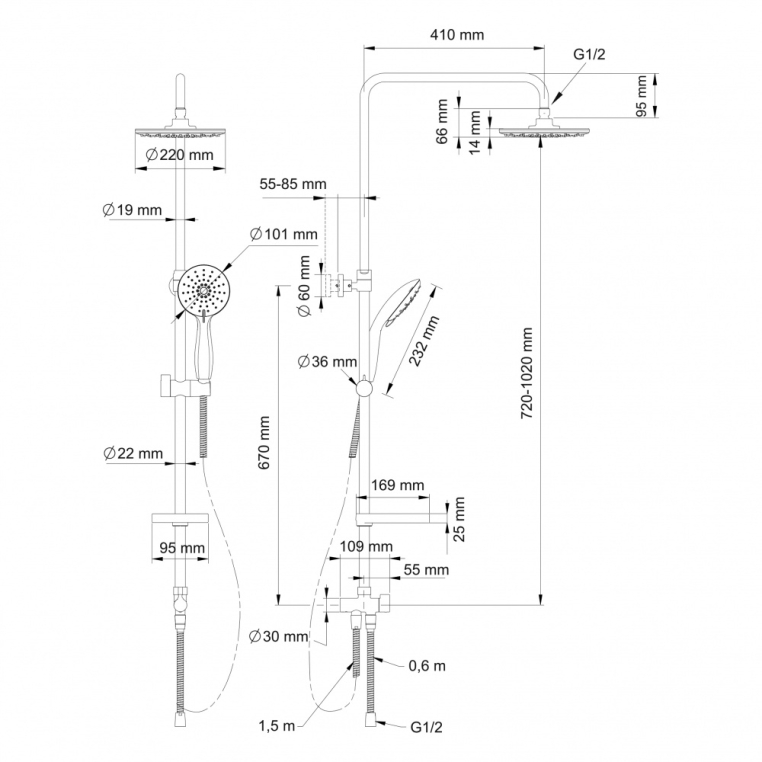 - длина одного шланга 1500 мм, второго 600 мм;