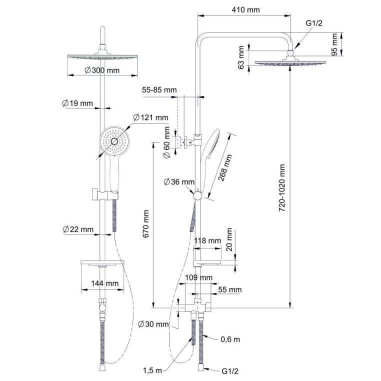 - длина одного шланга 1500 мм, второго 600 мм;