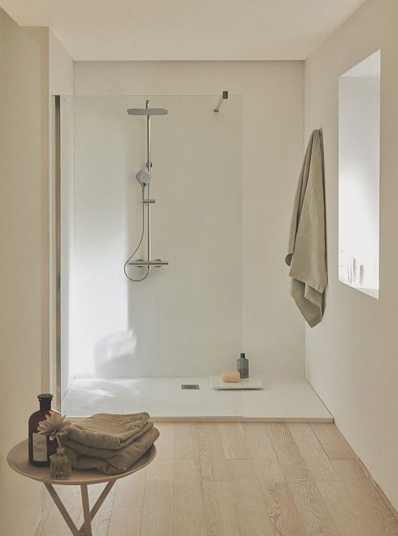 С термостатическим смесителем для душа.
