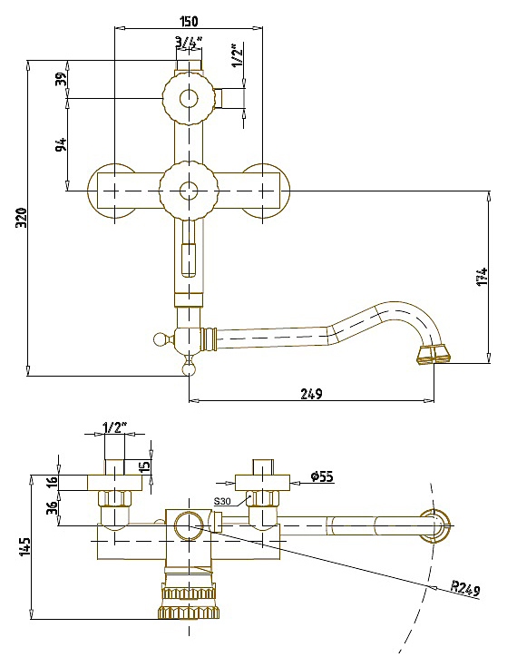 - Исполнение излива: традиционный