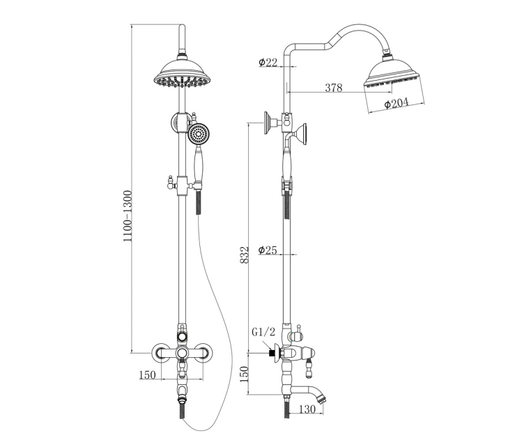 - Размер верхнего душа, см: 20.4