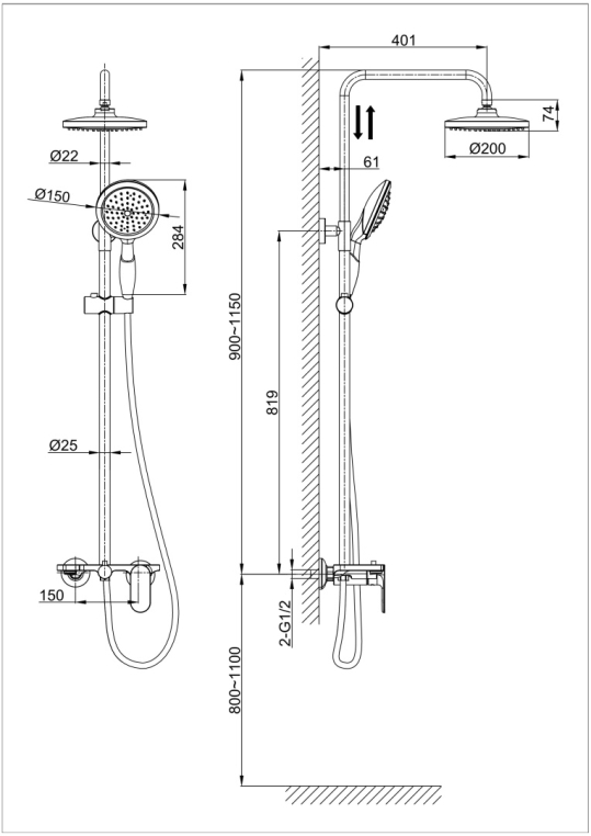- Размер верхнего душа, см: 20
