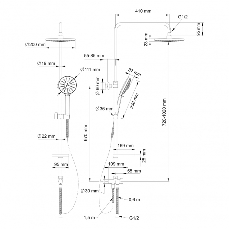 - длина одного шланга 1500 мм, второго 600 мм;