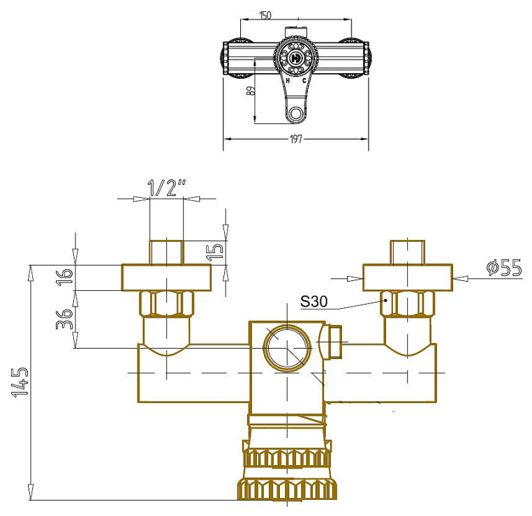 - Исполнение излива: излив отсутствует