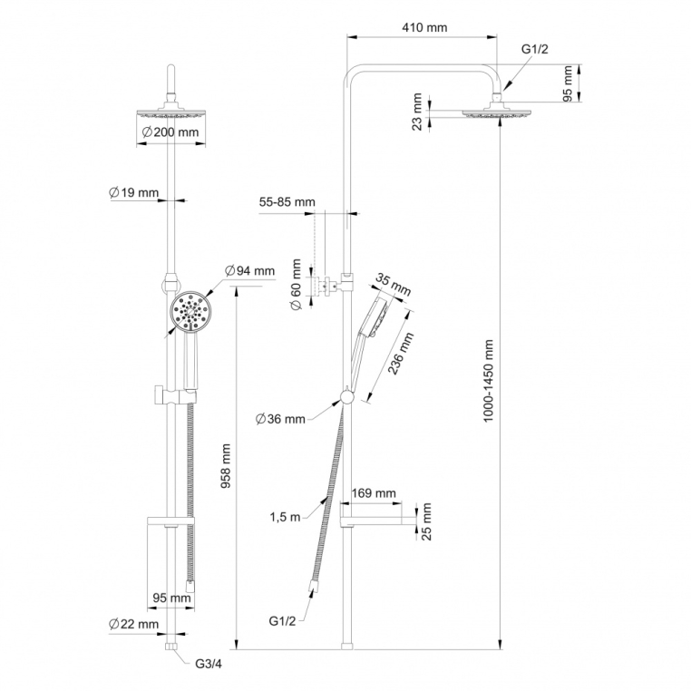 Семейный душ Swedbe Calypso 5060 ПРЕИМУЩЕСТВА: - верхний душ (душевая головка) с регулировкой наклона; - латунные трубки с возможностью регулировки высоты, телескопические; - ручной душ, с пятирежимной лейкой; - многопозиционный кронштейн; - подвижный крепеж, можно использовать старые отверстия; - шланг металлический и системой против скручивания; - мыльница; - гипоаллергенный пластик; - латунь с высоким содержанием меди; - шведское качество; - гарантия: 2 года; - срок службы: 15 лет.