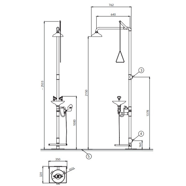 - Аварийная раковина активируется педалью или рычагом