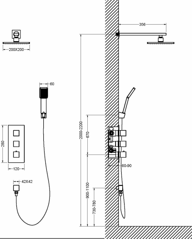 Душевая система встроенная с термостатом Timo Tetra-thermo SX-0179/03SM черный