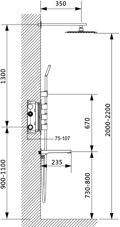 Размер верхнего душа, мм