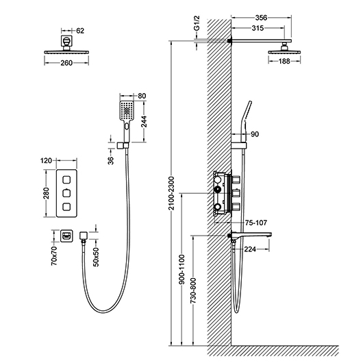 Душевая система встроенная с термостатом Timo Petruma SX-5049/03SM черный