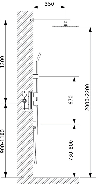 : душевая лейка, настенный держатель, смеситель, шланг для душа, шланговое подключение, верхний душ, кронштейн для верхнего душа