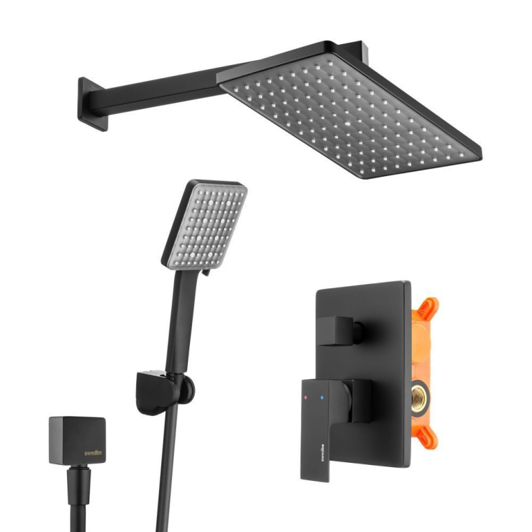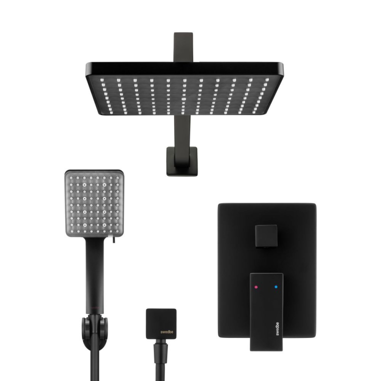 Душевая система Swedbe Platta 5555B чёрный, встраиваемый c керамическим картриджем