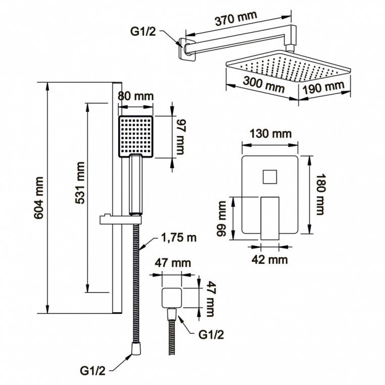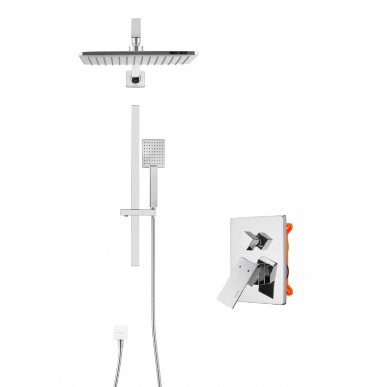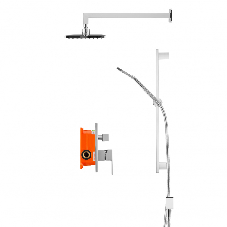 Swedbe Platta 5539 Душевой комплект со встроенным смесителем (с монтажным боксом) и верхним душем. ПРЕИМУЩЕСТВА: - готовое решение для ванной комнаты; - верхний душ (душевая головка) с регулировкой наклона, настенный монтаж; - ручной душ; - душевая штанга, многопозиционный кронштейн; - шланговое подсоединение; - шланг металлический и системой против скручивания; - гипоаллергенный пластик; - латунь с высоким содержанием меди; - шведское качество; - гарантия: 5 лет; - срок службы: 25 лет.