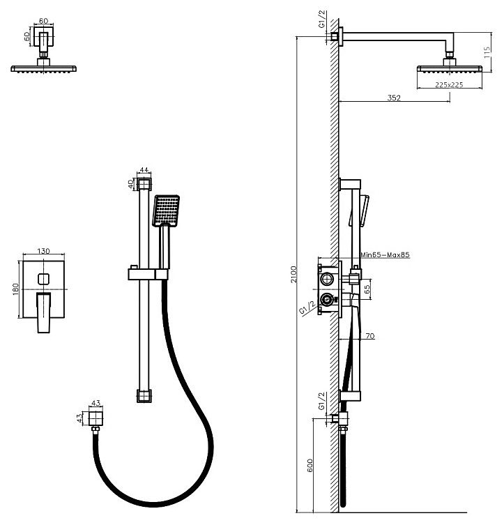 Встраиваемая душевая система RUSH арт.TR3635-41 Black из коллекции Thira изготовлена из высококачественной латуни и имеет рычажное управление. В душевую систему установлен картридж D-35 с керамическими пластинами.