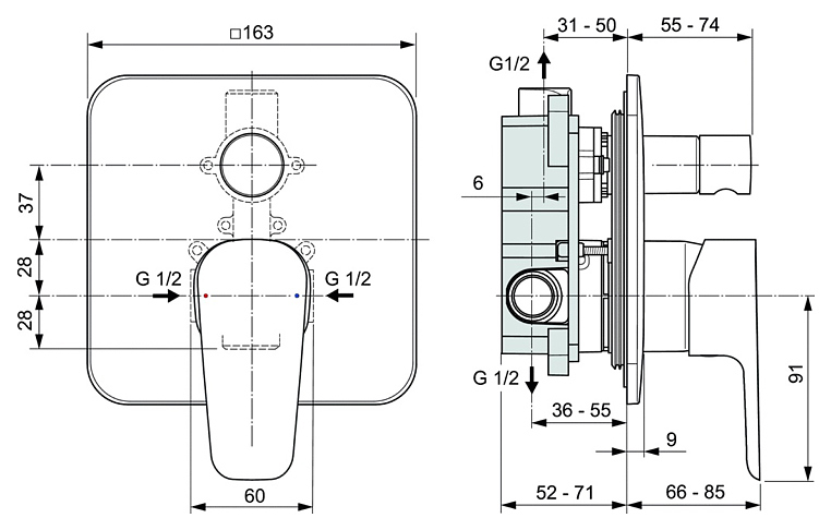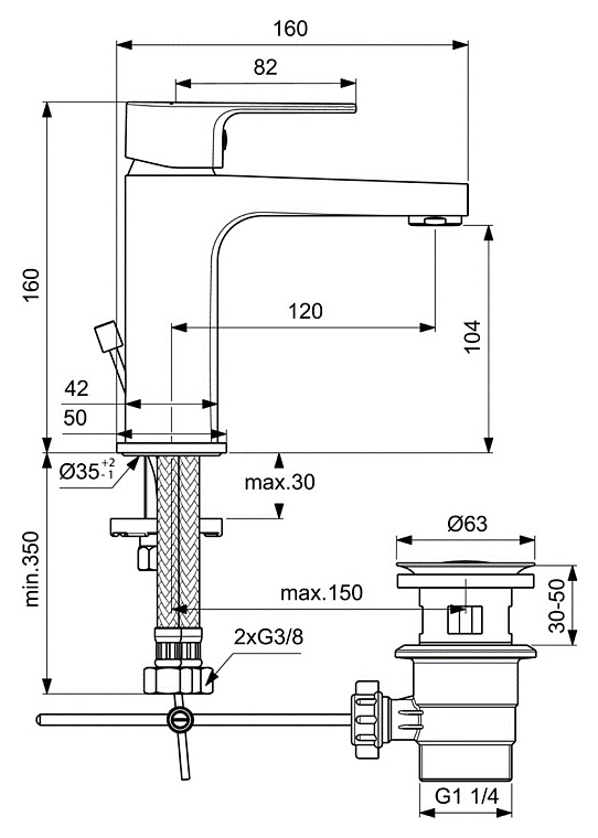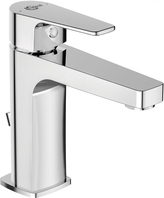 Смеситель для умывальника BC224AA ESLA: система монтажа EASY-FIX (облегченный монтаж), аэратор Perlator с ограничением потока 5 л/мин, керамический картридж 35 мм с функцией HWTC, металлическая рукоятка с индикатором горячей / холодной воды, гибкая подводка G3/8", пластиковый донный клапан