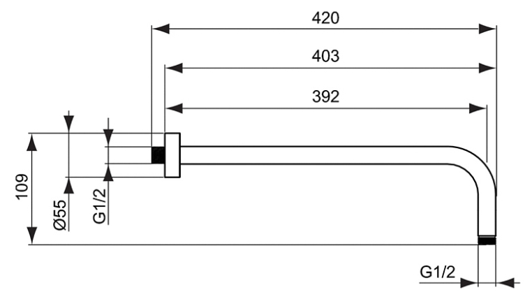 Настенный держатель верхнего душа 400 мм B9445AA IDEALRAIN L1: металлический, с металлической накладкой