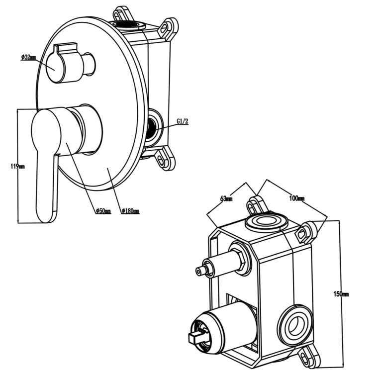 Swedbe Platta 5537 Душевой комплект со встроенным смесителем (с монтажным боксом) и верхним душем.