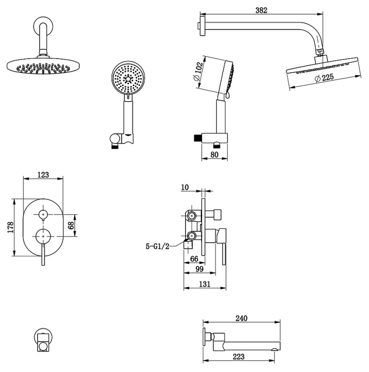 - Размер верхнего душа, см: 20