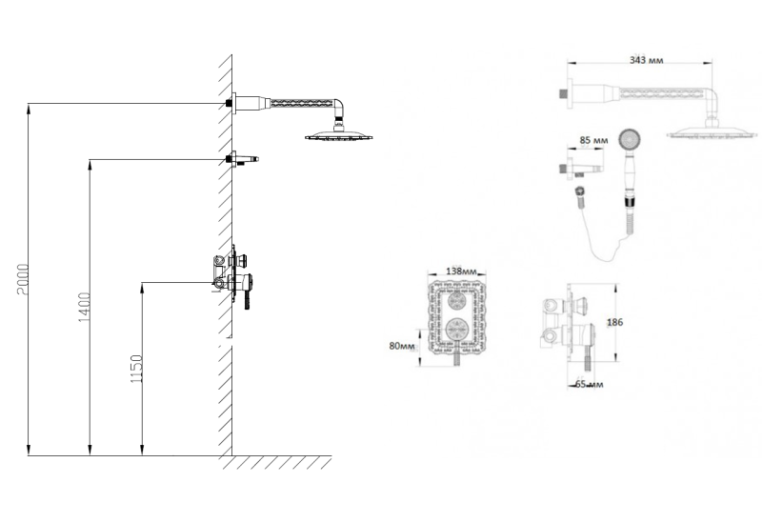- Размер верхнего душа, см: 20