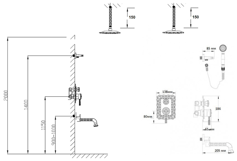 • Размер верхнего душа, см: 20