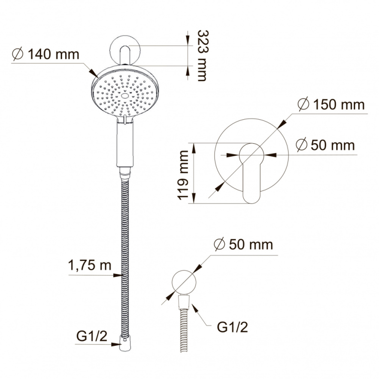 - ручной душ, с трёхрежимной лейкой;