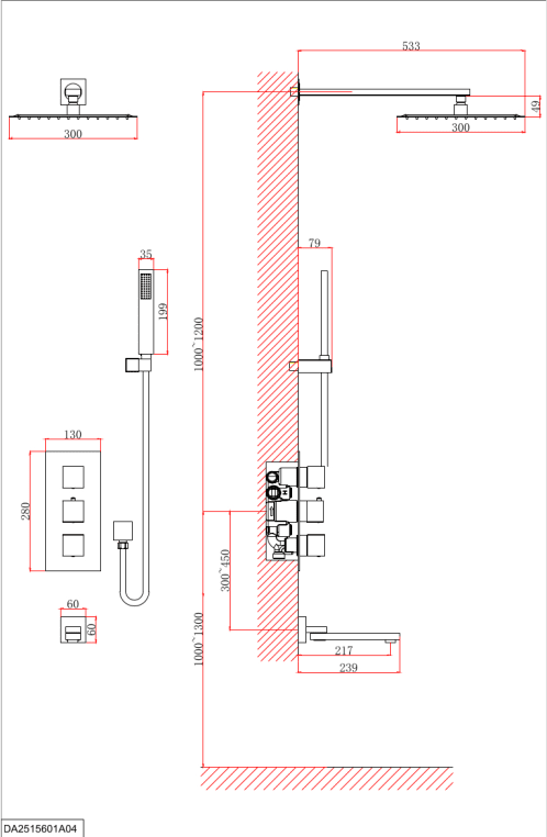 Душевая система для ванны и душа D&K Bayern.Liszt DA2515601A04 встраиваемый термостатический с изливом хром
