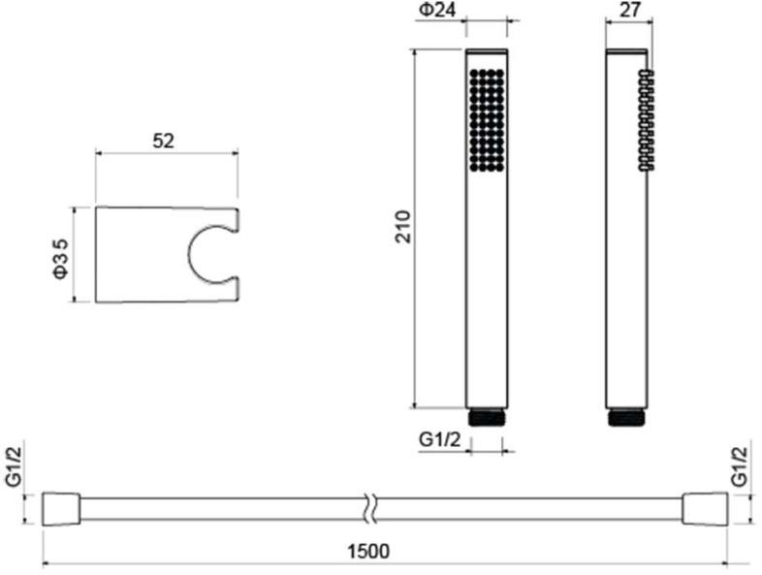 Округлый прямоугольный ручной душ из латуни