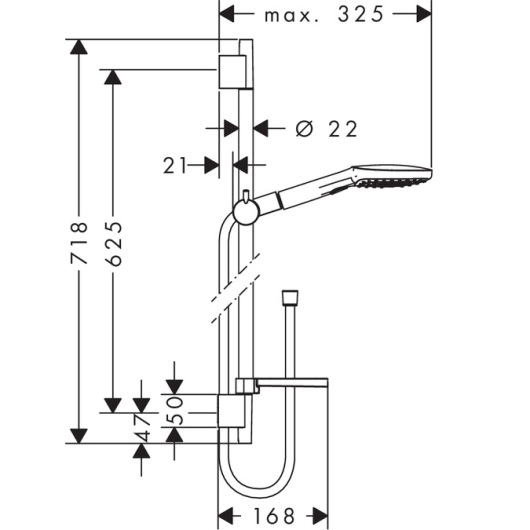 держатель ручного душа регулируется в пределах 90°, поворачивается вправо и влево, перемещается вверх и вниз