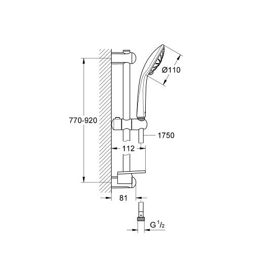 (регулируемое расстояние между настенными креплениями штанги позволяет использовать для монтажа уже имеющиеся отверстия в стене)