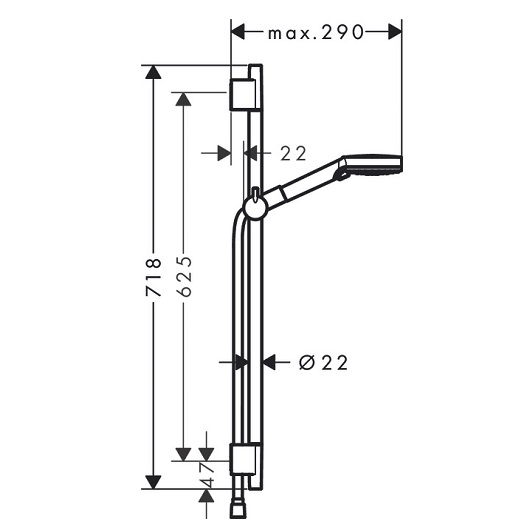 состоит из: ручной душ, душевая штанга, шланг для душа, ползунок