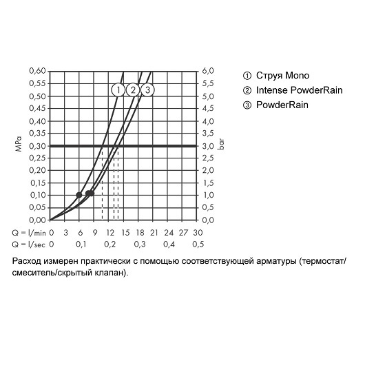 тип струи: PowderRain, Intense PowderRain, MonoRain