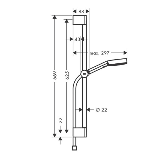 состоит из: ручной душ, ползунок, душевая штанга, шланг для душа