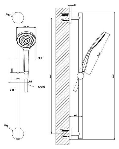 Штанга в комплекте с душевой лейкой с защитой от известкового налета, шланг 1,50 м.