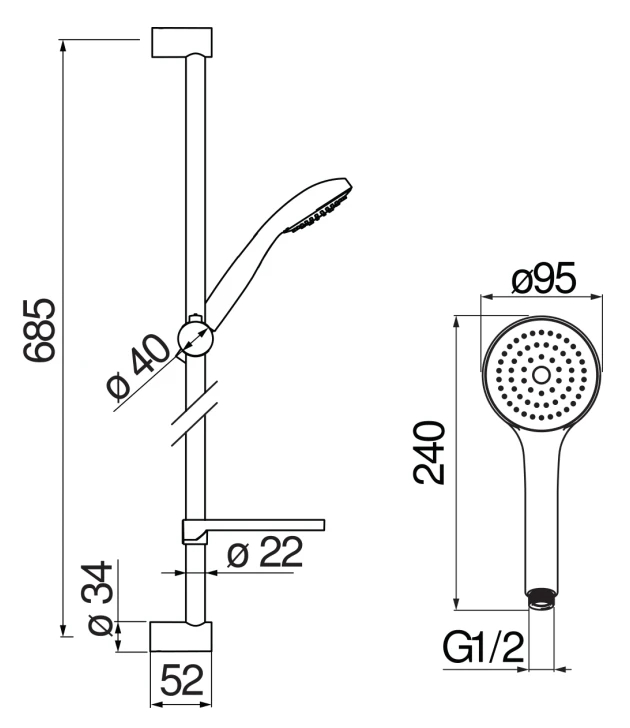 Душевая стойка NOBILI AD140/64CR выполнена в современном стиле и используется в ванных комнатах. Модель оснащена душевой лейкой круглой формы и полкой-мыльницей.