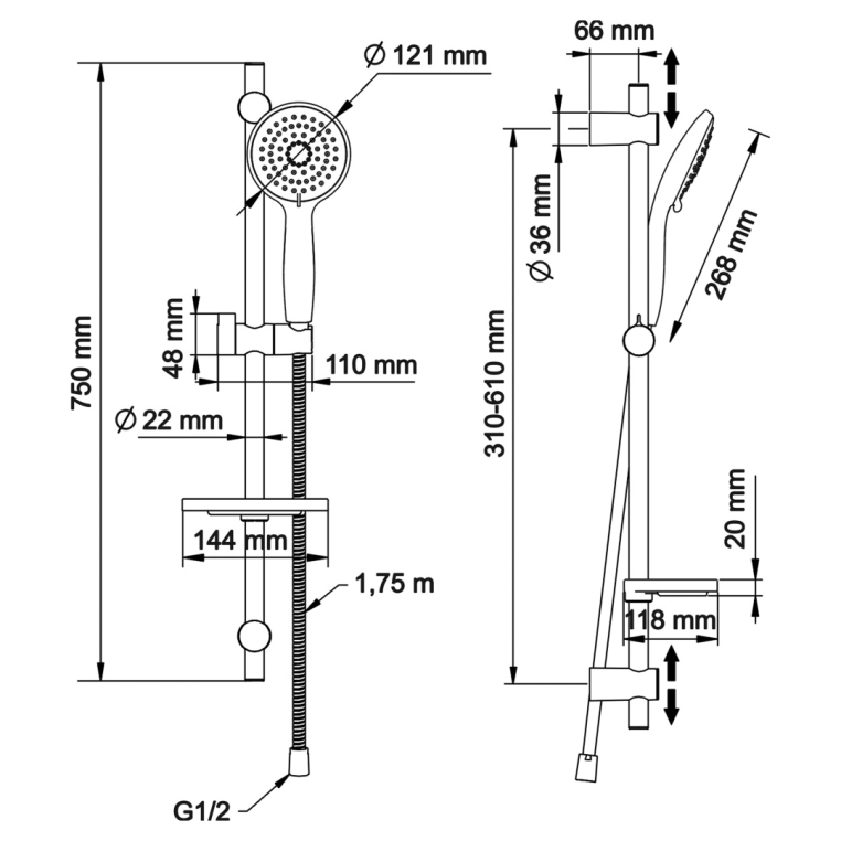 Душевой комплект. Поток 16 л/мин. Диаметр лейки 120 мм. 3- режима. Гипоаллергенный пластик. 3D-эффект. Металлический шланг 1,75 м. Система против скручивания шланга . Латунная штанга. Подвижный крепеж, можно использовать старые отверстия. Мыльница. Стойка - 745 мм.