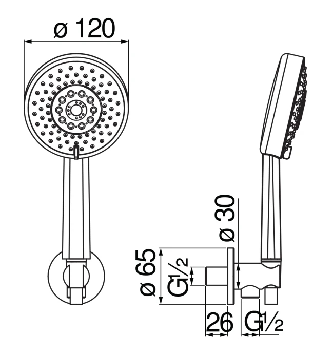 В комплект поставки входят ручной душ, держатель и душевой шланг.