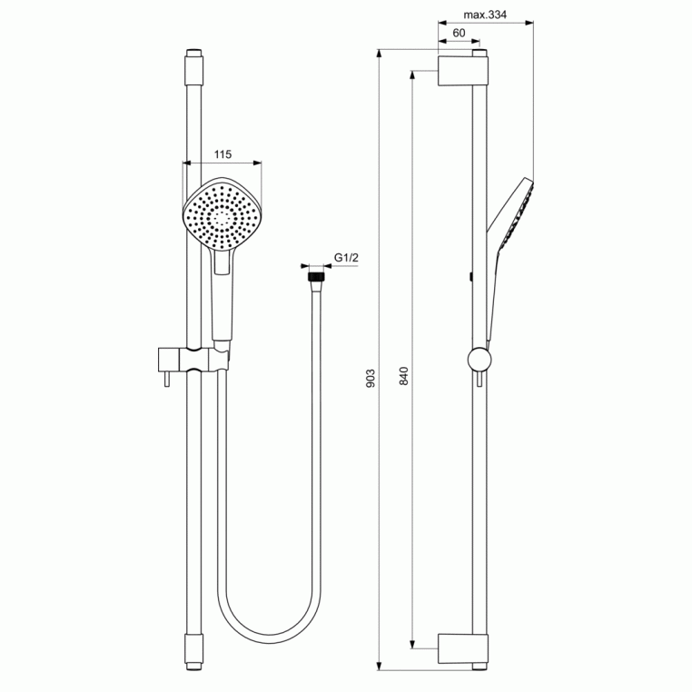 IDEALRAIN Душевой гарнитур со штангой EVO DIAMOND L3, диаметр лейки Ø110 мм, количество функций: 3, режим струи: Rain (Дождь), Smart Rain (Бодрящий дождь), Massage (Массаж), самоочищающаяся лейка, ограничение потока 8 л/мин, шланг 1750 мм с силикононовым покрытием IDEALFLEX®, штанга 900 мм с регулируемыми кронштейнами, Ø20 мм, металлический держатель лейки, фиксатор высоты, регулировка наклона лейки.
