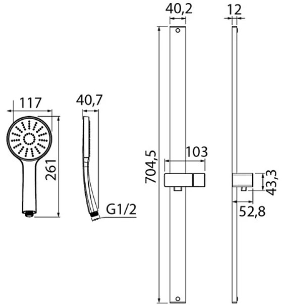 Ручная лейка, черная, 1 режим, диаметр 117 мм.