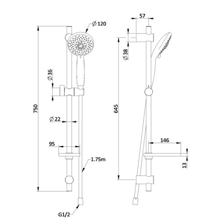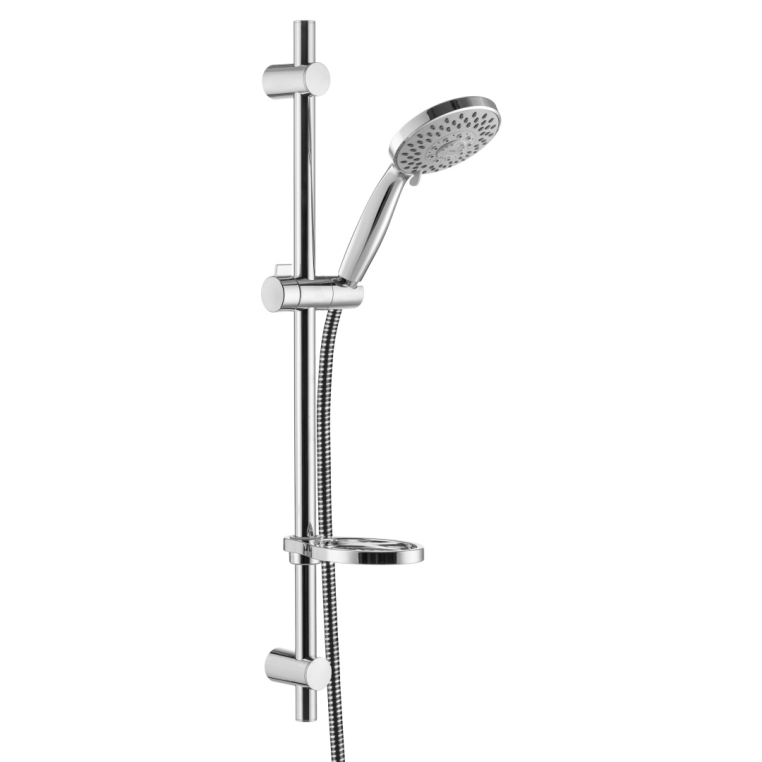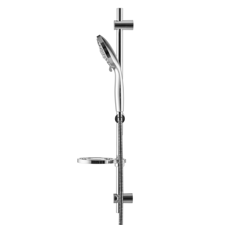 Душевой комплект. Поток 16 л/мин. Диаметр лейки 130мм. 5- режимов , в их числе пульсирующий и "острый" массаж. Гипоаллергенный ABS пластик. PVC шланг с мет. структурой - 1,75 м. Система против скручивания шланга. Латунная штанга. Подвижный крепеж, можно использовать старые отверстия. Мыльница. Стойка - 745 мм.