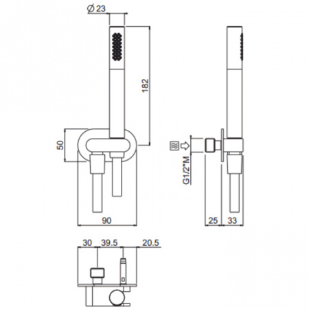 Дуплекс, состоящий из: латунного одноструйного душа, устойчивого к отложению известкового налета внутри, его легко чистить и обслуживать. Неподвижный встроенный прямоугольный держатель из латуни, стандарт подводки 1/2 ", двойной гибкий шланг, предотвращающий скручивание, из гладкого ПВХ, 150 см. Цвет хром.