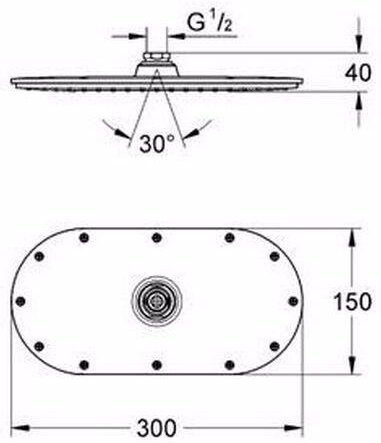 Душевая лейка размером 300 x 150 мм, шаровым шарниром и системой SpeedClean против известковых отложений