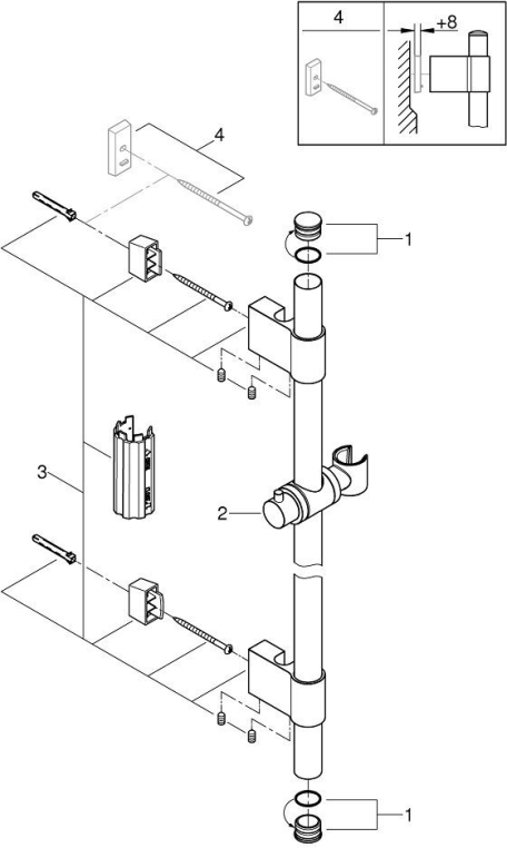 Душевая штанга, 1150 мм