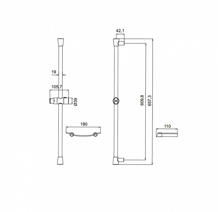 Комплектация: прозрачная мыльница из ABS-пластика, крепления; Материал: нержавеющая сталь; Высота стойки: 65,7 см